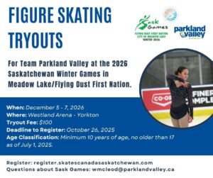 Figure Skating tryouts for Team Parkland Valley at the 2026 Saskatchewan Winter Games in Meadow Lake/Flying Dust First Nation will take place: